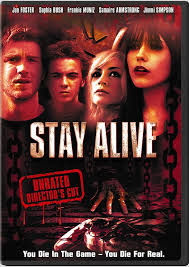 It is the Movie in which the friend face brutal death, a group of boys and girls possessed by THE VIDEO GAME named as "STAY ALIVE", While playing the game they realize that once they died in the Game the Die for he real. So their number decreased while playing game in the same way they get die in the game the remaining will realize they have to win the game for their life otherwise they will be a part of history also.